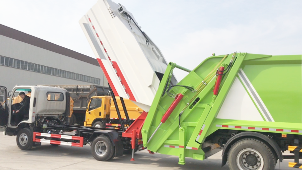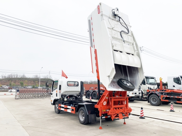 | 1.專用裝置:掛桶機構和箱體,主要用于垃圾的收集和轉運;2.隨底盤選裝排半駕駛室,選裝前面罩,前部燈具,前保險杠,徽標樣式及安裝位置,選裝后視鏡及安裝位置,選裝后組合燈,選裝遮陽罩,選裝輪罩;3.選裝箱體外形結構,選裝掛桶機構;4.側,后防護材料均為Q235,連接方式為焊接加螺栓連接,后部防護斷面尺寸(mm):120×60,離地高度420mm;5.發動機型號/油耗對應值為:D20TCIF1/11.3(L/100km),Q23-115E60/11.4(L/100km),D20TCIF1/12.3(L/100km);6.ABS生產廠家:威伯科汽車控制系統(中國)有限公司,型號:ABS-E4S/4M;浙江萬安科技股份有限公司,型號:VIE ABS-II;廣州瑞立科密汽車電子股份有限公司,型號:CM4XL-4S/4M、CM4YK;蕪湖伯特利汽車安全系統有限公司,型號:WBTL-ABS;7.外形長度/軸距對應關系(mm):5910,5630/3300;5150,5430/2820. |