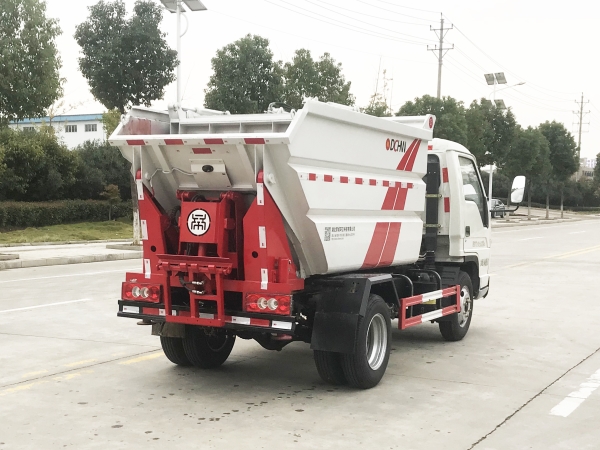 自裝卸式垃圾車在底盤的基礎上,加裝垃圾箱體、連接附件、防護欄及液壓系統等裝置。具有操作安全、使用性能穩定、返修率低、售后服務及時周到等特點。本產品主要用于收集與轉運城市住宅小區、鄉鎮街道等產生的生活垃圾。整車小巧靈活,行動方便,適應人流密集的商業區域和道路交通情況較差的城鄉地區。本車配有后掛桶進料機構,在翻桶處操作,可與120L/240L/660L標準塑料桶對接。整車具有自卸功能,卸料方便。結構結實耐腐 船型箱體結構實現100%無泄漏;刮板進料+壓縮 壓縮效率高;高位舉升自卸結構,卸料干凈 對接方便;多功能翻桶進料機構 進料快捷穩定;液壓系統穩定可靠;自動化程度高,電液聯合控制。