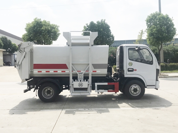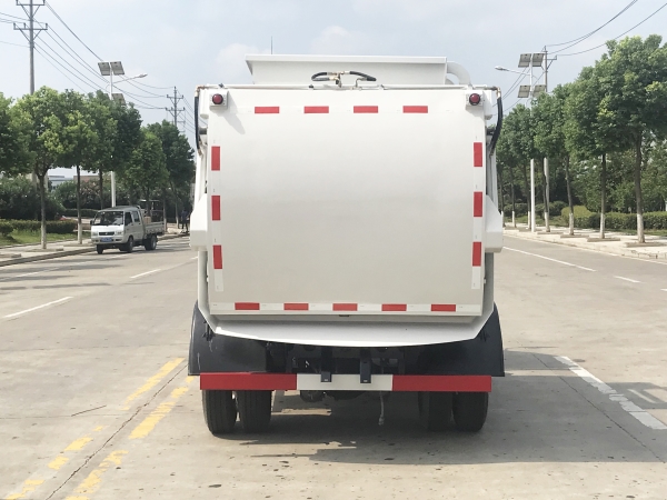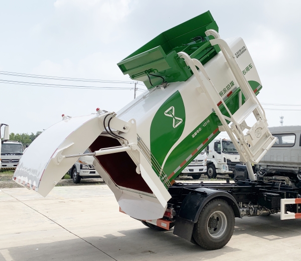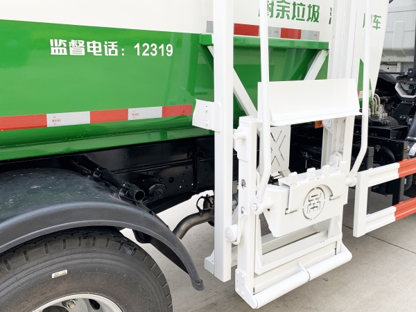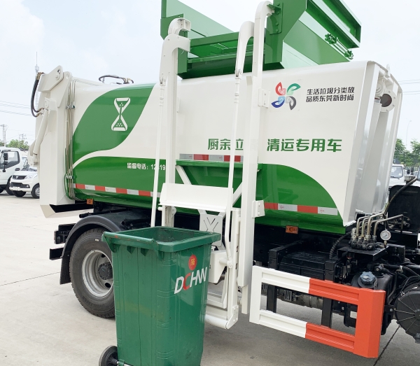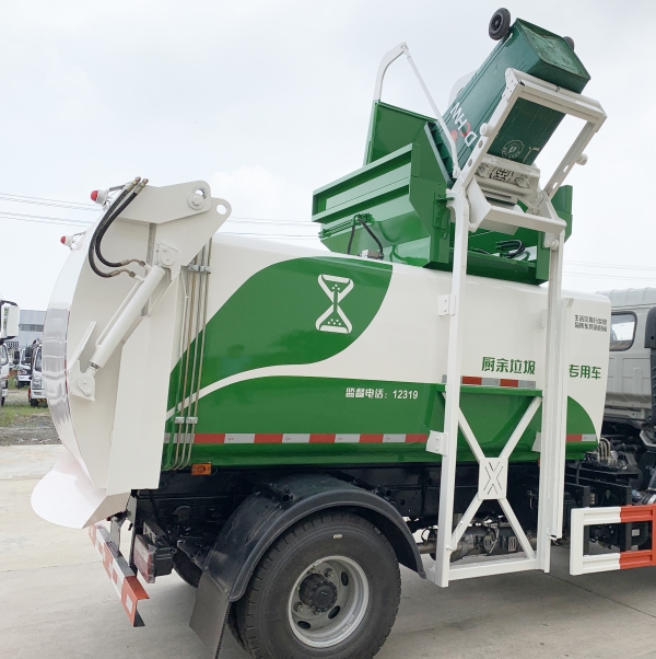 餐廚垃圾車是一種用于收集和運輸生活垃圾、食品垃圾(泔水)及城市淤泥的專用車輛。采用側提桶上料方式進行餐廚垃圾收集,采用自卸方式進行卸料。先進的弧形進料口設計配上完美得液壓刮板系統,使裝料更加快捷和順暢,尾門密封液壓鎖緊系統,確保運輸途中滴水不漏。 主要結構:汽車底盤、垃圾箱體、底架側提桶機構、后門總成、液壓刮板系統、液壓系統和電控系統。液壓系統及電控系統由油泵、油缸、郵箱、電液閥、PLC單元、行程開關和開關等組成。同時本產品選配高壓清洗系統,自動稱重系統和衛星定位互聯網系統,自帶水箱,可以在現場對本車及垃圾桶進行沖洗。是城鎮餐廚垃圾收集運輸的理想工具。