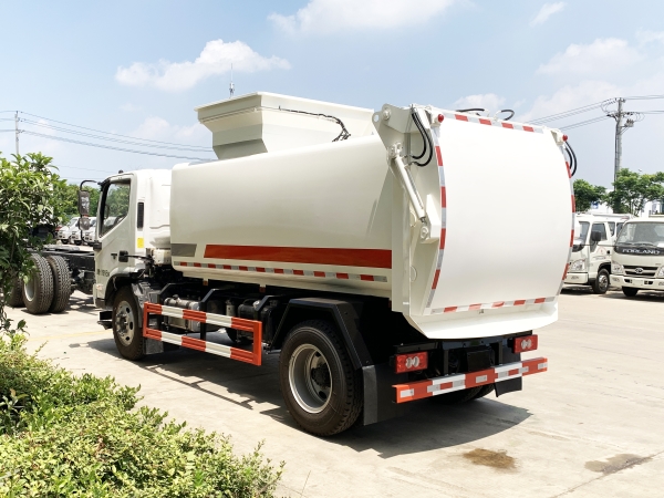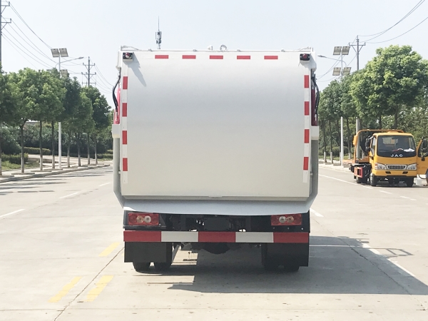 餐廚垃圾車是一種用于收集和運輸生活垃圾、食品垃圾(泔水)及城市淤泥的專用車輛。采用側提桶上料方式進行餐廚垃圾收集,采用自卸方式進行卸料。先進的弧形進料口設計配上完美得液壓刮板系統,使裝料更加快捷和順暢,尾門密封液壓鎖緊系統,確保運輸途中滴水不漏。 主要結構:汽車底盤、垃圾箱體、底架側提桶機構、后門總成、液壓刮板系統、液壓系統和電控系統。液壓系統及電控系統由油泵、油缸、郵箱、電液閥、PLC單元、行程開關和開關等組成。同時本產品選配高壓清洗系統,自動稱重系統和衛星定位互聯網系統,自帶水箱,可以在現場對本車及垃圾桶進行沖洗。是城鎮餐廚垃圾收集運輸的理想工具。