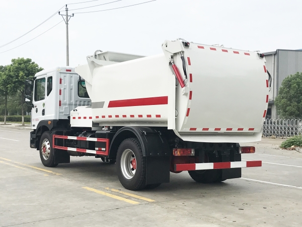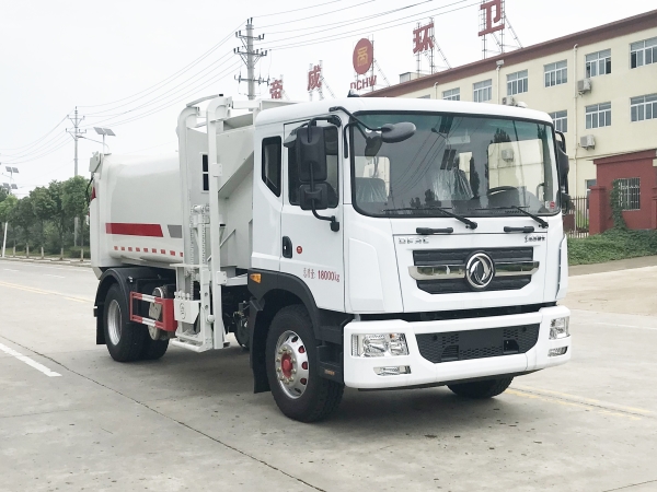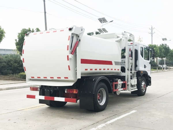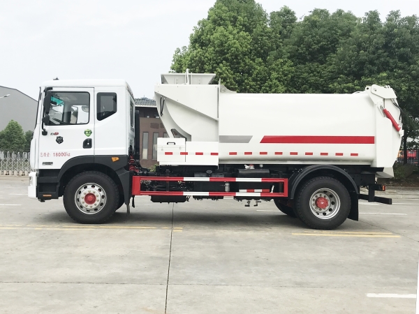 餐廚垃圾車是一種用于收集和運輸生活垃圾、食品垃圾(泔水)及城市淤泥的專用車輛。采用側提桶上料方式進行餐廚垃圾收集,采用自卸方式進行卸料。先進的弧形進料口設計配上完美得液壓刮板系統(tǒng),使裝料更加快捷和順暢,尾門密封液壓鎖緊系統(tǒng),確保運輸途中滴水不漏。 主要結構:汽車底盤、垃圾箱體、底架側提桶機構、后門總成、液壓刮板系統(tǒng)、液壓系統(tǒng)和電控系統(tǒng)。液壓系統(tǒng)及電控系統(tǒng)由油泵、油缸、郵箱、電液閥、PLC單元、行程開關和開關等組成。同時本產品選配高壓清洗系統(tǒng),自動稱重系統(tǒng)和衛(wèi)星定位互聯(lián)網系統(tǒng),自帶水箱,可以在現場對本車及垃圾桶進行沖洗。是城鎮(zhèn)餐廚垃圾收集運輸的理想工具。