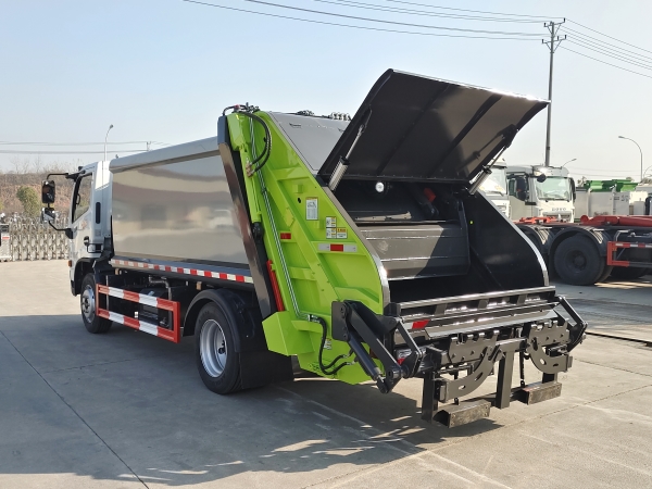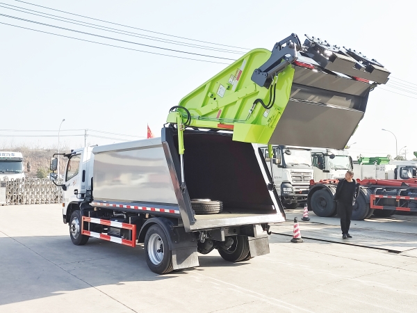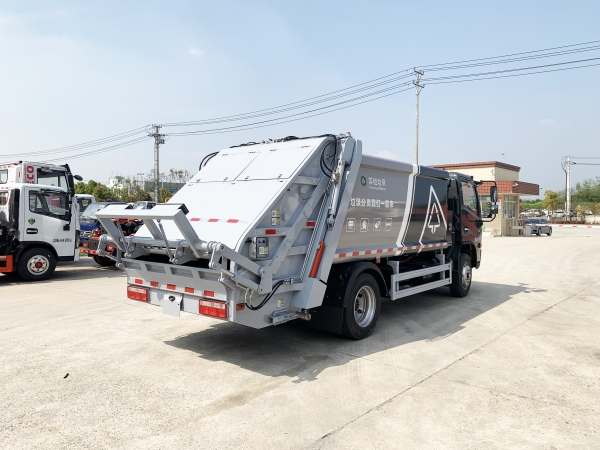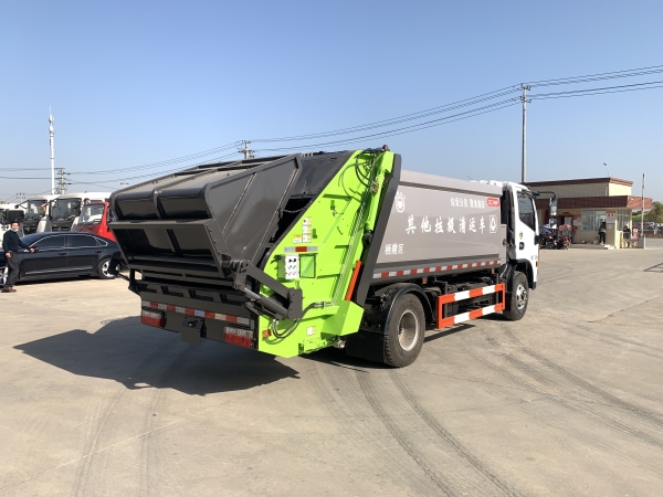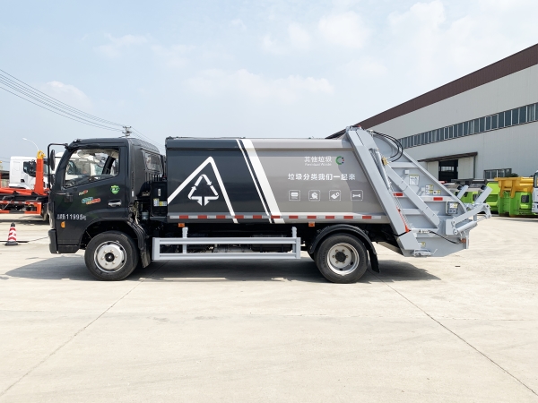壓縮式垃圾車由密封式垃圾廂、液壓系統、操作系統組成。整車為全密封型,自行壓縮、自行傾倒、壓縮過程中的污水全部進入污水廂,較為徹底的解決了垃圾運輸過程中的二次污染的問題,避免了給人們帶來不便,關鍵部件采用進口部件,具有壓力大、密封性好、操作方便、安全等優點。 可選配后掛桶翻轉機構或垃圾斗翻轉機構。 專門用于收集城鎮居民生活垃圾和其他可壓縮垃圾的的環衛專用車輛,壓縮式垃圾車由密封式垃圾箱、液壓系統、操作系統組成。整車為全密封型,自行壓縮、自行傾倒、壓縮過程中的污水全部進入污水箱,較為徹底的解決了垃圾運輸過程中的二次污染的問題,關鍵元器件采用進口件,具有壓力大、密封性好、操作方便、安全省力等優點。 主要有后裝壓縮式垃圾車和測裝壓縮式垃圾車,其中后裝壓縮式垃圾車可選配后掛桶收集裝置、鏟斗收集裝置、擺臂收集裝置、掛鐵通收集裝置,用戶可以根據不同需要選擇不同的收集裝置。