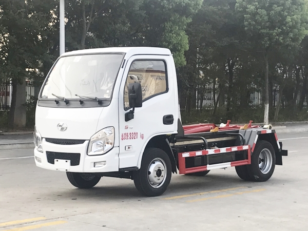 車廂可卸載式垃圾車,又稱勾臂式垃圾車、拉臂式垃圾車。該車廣泛適用與城市街道學校垃圾處理,可一車配備多個斗,各個垃圾點放置多個,帶自卸功能,液壓操作,方便傾倒。在平日里可將車載垃圾箱放置到各個垃圾收集站,待垃圾收集滿后,該車可直接開赴至垃圾站,通過液壓系統的操控,可將垃圾車后座上加裝的勾臂放下,掛住站內垃圾箱前端的連接點,將垃圾箱拉至車體的后座上,此時即可啟動車輛,將垃圾運送至垃圾處理站內,進行自卸式傾倒。該車主要的優點就是可一車配多斗,一輛車就可以維持數個垃圾收集站的運轉,效率高,且箱體為密封式設計,不會造成二次污染。