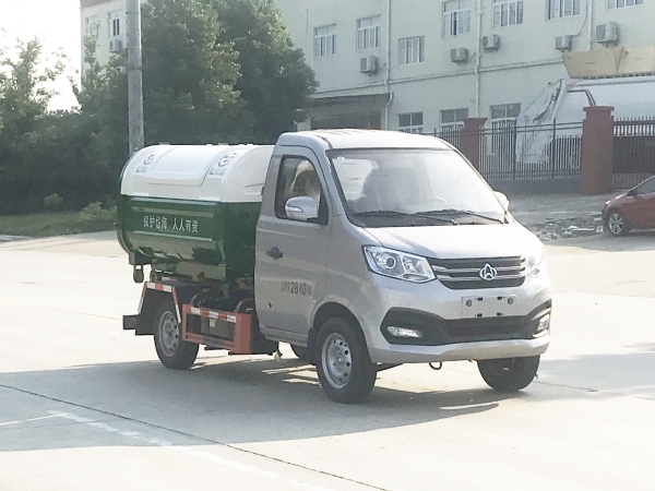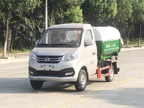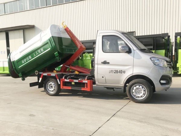 車廂可卸載式垃圾車,又稱勾臂式垃圾車、拉臂式垃圾車。該車廣泛適用與城市街道學校垃圾處理,可一車配備多個斗,各個垃圾點放置多個,帶自卸功能,液壓操作,方便傾倒。在平日里可將車載垃圾箱放置到各個垃圾收集站,待垃圾收集滿后,該車可直接開赴至垃圾站,通過液壓系統的操控,可將垃圾車后座上加裝的勾臂放下,掛住站內垃圾箱前端的連接點,將垃圾箱拉至車體的后座上,此時即可啟動車輛,將垃圾運送至垃圾處理站內,進行自卸式傾倒。該車主要的優點就是可一車配多斗,一輛車就可以維持數個垃圾收集站的運轉,效率高,且箱體為密封式設計,不會造成二次污染。