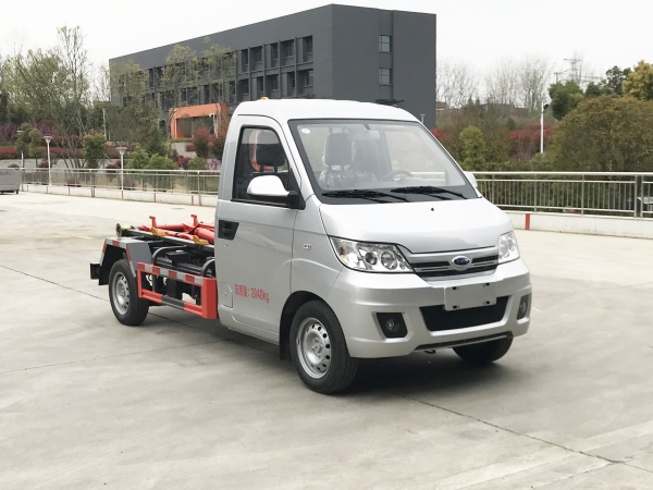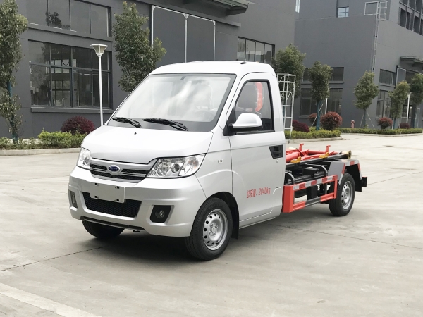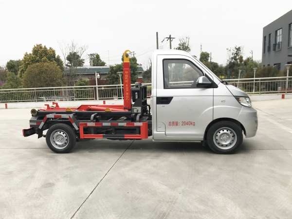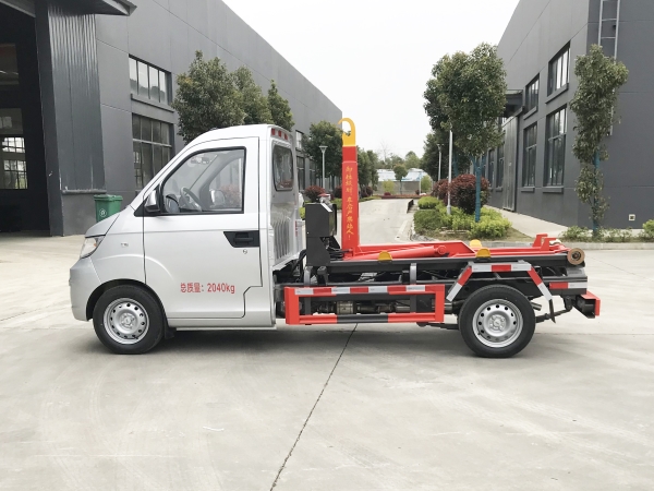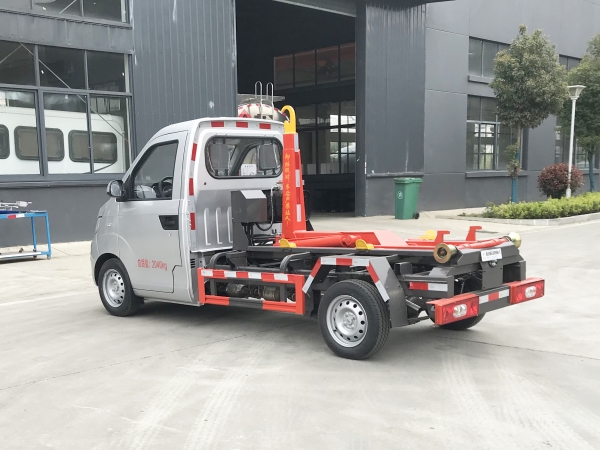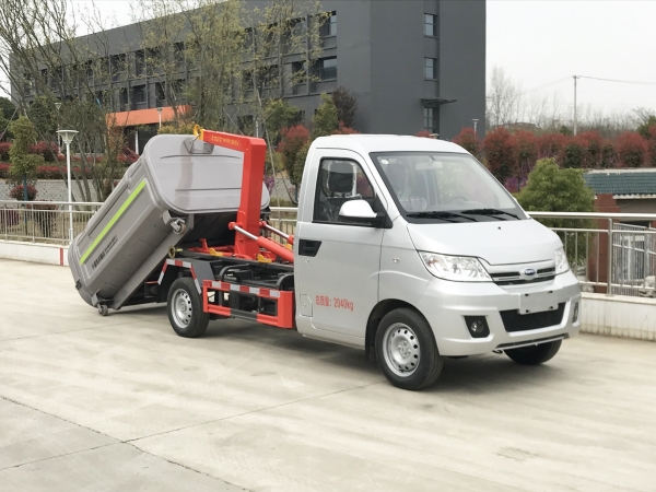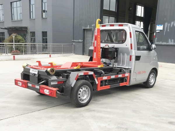 車廂可卸載式垃圾車,又稱勾臂式垃圾車、拉臂式垃圾車。該車廣泛適用與城市街道學校垃圾處理,可一車配備多個斗,各個垃圾點放置多個,帶自卸功能,液壓操作,方便傾倒。在平日里可將車載垃圾箱放置到各個垃圾收集站,待垃圾收集滿后,該車可直接開赴至垃圾站,通過液壓系統的操控,可將垃圾車后座上加裝的勾臂放下,掛住站內垃圾箱前端的連接點,將垃圾箱拉至車體的后座上,此時即可啟動車輛,將垃圾運送至垃圾處理站內,進行自卸式傾倒。該車主要的優點就是可一車配多斗,一輛車就可以維持數個垃圾收集站的運轉,效率高,且箱體為密封式設計,不會造成二次污染。