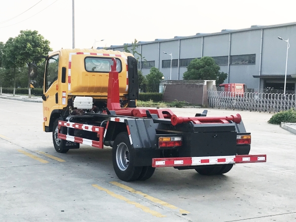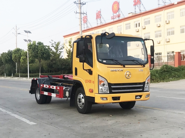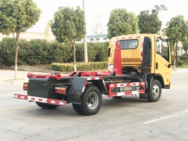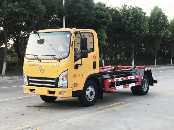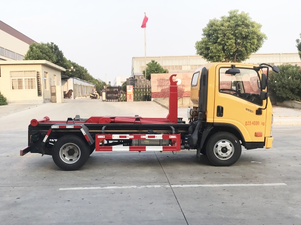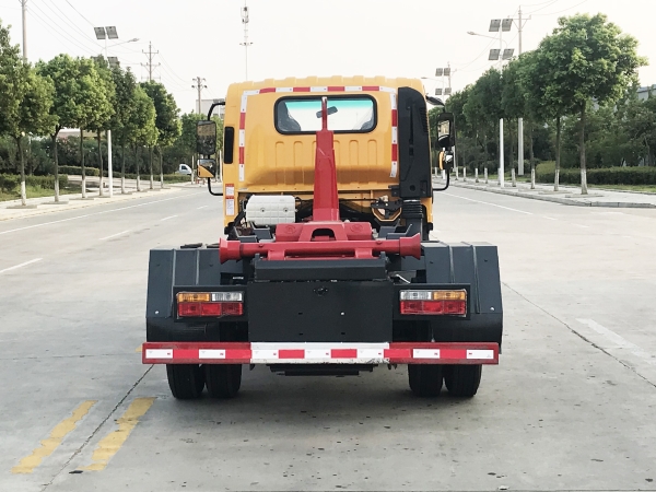 車廂可卸載式垃圾車,又稱勾臂式垃圾車、拉臂式垃圾車。該車廣泛適用與城市街道學校垃圾處理,可一車配備多個斗,各個垃圾點放置多個,帶自卸功能,液壓操作,方便傾倒。在平日里可將車載垃圾箱放置到各個垃圾收集站,待垃圾收集滿后,該車可直接開赴至垃圾站,通過液壓系統的操控,可將垃圾車后座上加裝的勾臂放下,掛住站內垃圾箱前端的連接點,將垃圾箱拉至車體的后座上,此時即可啟動車輛,將垃圾運送至垃圾處理站內,進行自卸式傾倒。該車主要的優點就是可一車配多斗,一輛車就可以維持數個垃圾收集站的運轉,效率高,且箱體為密封式設計,不會造成二次污染。