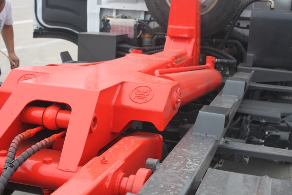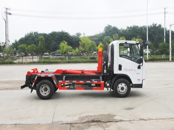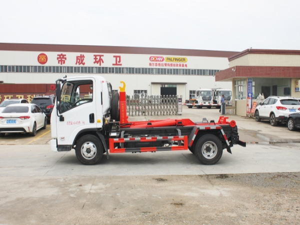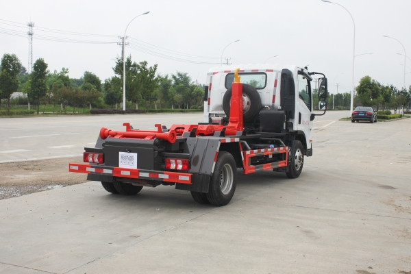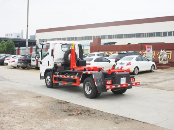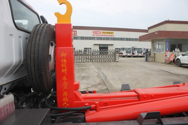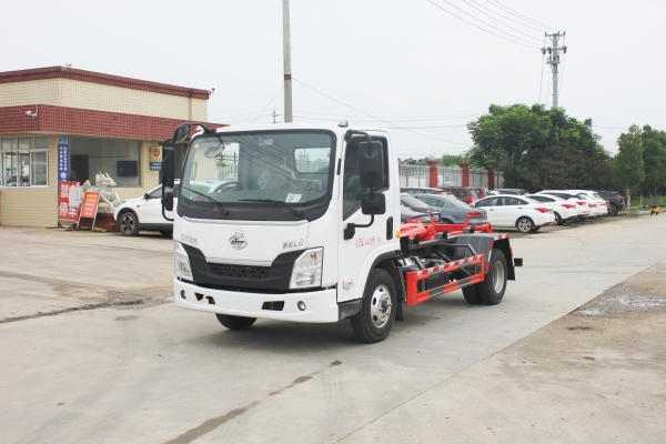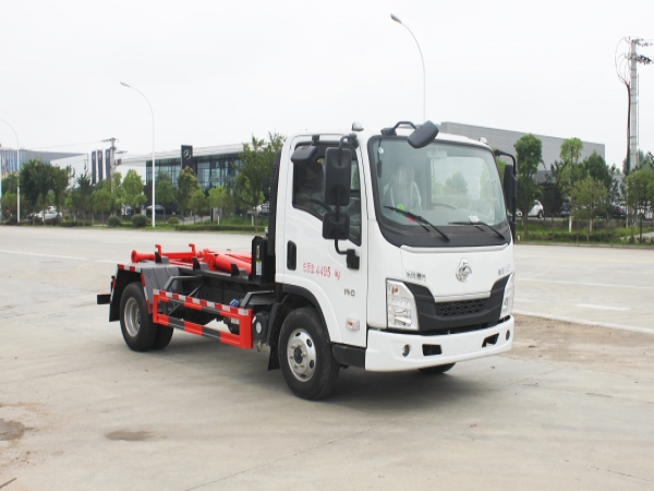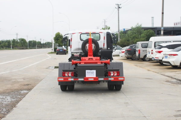 車廂可卸載式垃圾車,又稱勾臂式垃圾車、拉臂式垃圾車。該車廣泛適用與城市街道學校垃圾處理,可一車配備多個斗,各個垃圾點放置多個,帶自卸功能,液壓操作,方便傾倒。在平日里可將車載垃圾箱放置到各個垃圾收集站,待垃圾收集滿后,該車可直接開赴至垃圾站,通過液壓系統的操控,可將垃圾車后座上加裝的勾臂放下,掛住站內垃圾箱前端的連接點,將垃圾箱拉至車體的后座上,此時即可啟動車輛,將垃圾運送至垃圾處理站內,進行自卸式傾倒。該車主要的優點就是可一車配多斗,一輛車就可以維持數個垃圾收集站的運轉,效率高,且箱體為密封式設計,不會造成二次污染。