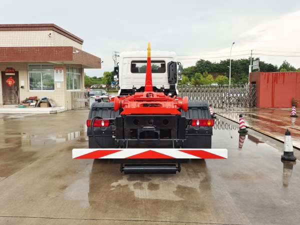 | 1.該車用于垃圾的收集清運,主要專用裝置為勾臂;2.選裝后部斜邊結構,選裝后部管接頭,選裝后部支腿結構,選裝不同勾臂結構,選裝備胎架,選裝液壓油箱位置,選裝控制盒位置;整車長(mm)/軸距(mm)的對應關系分別為:7300/4500,7500/4700;3.側,后防護材料均采用Q235碳鋼,連接方式為焊接加螺栓連接,后部防護斷面尺寸(mm):120×60,離地高度470mm;4.隨底盤選裝D6.7NS6B230,B6.2NS6B210,B6.2NS6B230,DDi50E190-60,D4.5NS6B190,對應的油耗值(L/100km)分別為:23.7,23.8,23.8,23.9,24.4;5.ABS型號/生產廠家:3631010-C2000/東科克諾爾商用車制動系統(十堰)有限公司,ABS 8/東科克諾爾商用車制動系統(十堰)有限公司, 4460046450/威伯科汽車控制系統(中國)有限公司,J ABS/焦作博瑞克控制技術有限公司,安裝帶有衛星定位功能的行駛記錄儀;6.隨底盤選裝高度不同的駕駛室;選裝不同部件布局;選裝前霧燈;選裝駕駛室頂部裝飾燈;選裝駕駛室前面罩;選裝前保險杠及前部燈具,選裝后視鏡;選裝后部燈具;駕駛室前臉擾流罩為選裝件;駕駛室臥鋪側窗選裝裝飾板;選裝踏步結構;選裝后背式排氣管.該車型可選裝ETC車載裝置. | |||