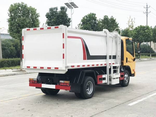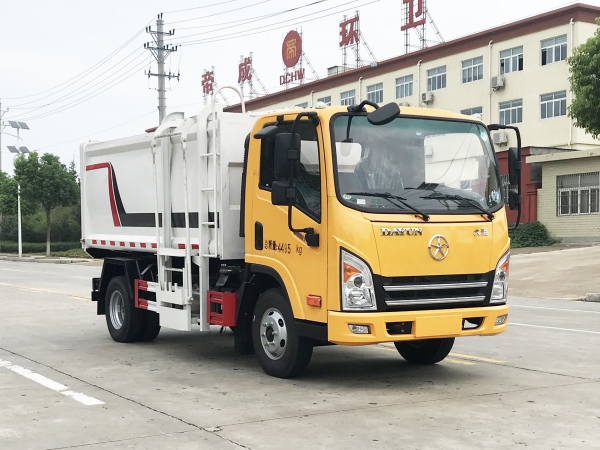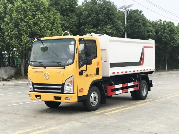 自裝卸式垃圾車是收集、中轉清理運輸垃圾,避免二次污染的新型環衛車輛,其主要特點是垃圾收集方式簡便、高效、環保性好,整車利用效率高,廣泛適用于環衛、市政、物業小區、垃圾多而集中的居民區、城市街道垃圾處理,均具有密封自卸功能,液壓操作,傾卸垃圾方便。 在底盤的基礎上,加裝垃圾箱體、連接附件、防護欄及液壓系統等裝置。具有操作安全、使用性能穩定、返修率低、售后服務及時周到等特點。本產品主要用于收集與轉運城市住宅小區、鄉鎮街道等產生的生活垃圾。整車小巧靈活,行動方便,適應人流密集的商業區域和道路交通情況較差的城鄉地區。本車配有側掛桶進料機構,在翻桶處操作,可與120L/240L標準塑料桶對接。整車具有自卸功能,卸料方便。
