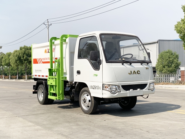 自裝卸式垃圾車是收集、中轉(zhuǎn)清理運(yùn)輸垃圾,避免二次污染的新型環(huán)衛(wèi)車輛,其主要特點(diǎn)是垃圾收集方式簡便、高效、環(huán)保性好,整車?yán)眯矢撸瑥V泛適用于環(huán)衛(wèi)、市政、物業(yè)小區(qū)、垃圾多而集中的居民區(qū)、城市街道垃圾處理,均具有密封自卸功能,液壓操作,傾卸垃圾方便。 在底盤的基礎(chǔ)上,加裝垃圾箱體、連接附件、防護(hù)欄及液壓系統(tǒng)等裝置。具有操作安全、使用性能穩(wěn)定、返修率低、售后服務(wù)及時(shí)周到等特點(diǎn)。本產(chǎn)品主要用于收集與轉(zhuǎn)運(yùn)城市住宅小區(qū)、鄉(xiāng)鎮(zhèn)街道等產(chǎn)生的生活垃圾。整車小巧靈活,行動(dòng)方便,適應(yīng)人流密集的商業(yè)區(qū)域和道路交通情況較差的城鄉(xiāng)地區(qū)。本車配有側(cè)掛桶進(jìn)料機(jī)構(gòu),在翻桶處操作,可與120L/240L標(biāo)準(zhǔn)塑料桶對(duì)接。整車具有自卸功能,卸料方便。