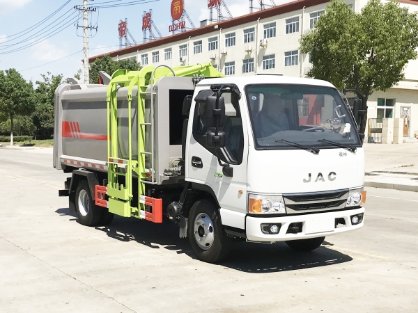 自裝卸式垃圾車是收集、中轉清理運輸垃圾,避免二次污染的新型環(huán)衛(wèi)車輛,其主要特點是垃圾收集方式簡便、高效、環(huán)保性好,整車利用效率高,廣泛適用于環(huán)衛(wèi)、市政、物業(yè)小區(qū)、垃圾多而集中的居民區(qū)、城市街道垃圾處理,均具有密封自卸功能,液壓操作,傾卸垃圾方便。 在底盤的基礎上,加裝垃圾箱體、連接附件、防護欄及液壓系統(tǒng)等裝置。具有操作安全、使用性能穩(wěn)定、返修率低、售后服務及時周到等特點。本產品主要用于收集與轉運城市住宅小區(qū)、鄉(xiāng)鎮(zhèn)街道等產生的生活垃圾。整車小巧靈活,行動方便,適應人流密集的商業(yè)區(qū)域和道路交通情況較差的城鄉(xiāng)地區(qū)。本車配有側掛桶進料機構,在翻桶處操作,可與120L/240L標準塑料桶對接。整車具有自卸功能,卸料方便。